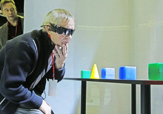 «Человек с бионическим зрением видит много маленьких вспышек, из которых формируются контуры окружающих объектов. В науке эти зрительные вспышки называются фосфенами. Картинка получается двухмерная, но человек ощущает объём и глубину пространства не только с помощью двух глаз. Мозг может автоматически просчитывать расстояние от одного объекта до другого, основываясь, например, на взаиморасположении объектов при движении. Поэтому, когда пациент хорошо осваивает бионическое зрение, он начинает воспринимать и глубину пространства в том числе», – рассказывает Андрей Демчинский, офтальмолог и руководитель медицинских проектов Лаборатории «Сенсор-Тех».