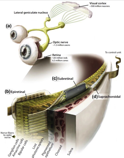 Ретинальные импланты устанавливаются именно на сетчатку глаза и потому имеют множество ограничений. Они подходят лишь людям, потерявшим зрение из-за таких заболеваний, как пигментный ретинит, хориодермия и возрастная макулярная дегенерация.