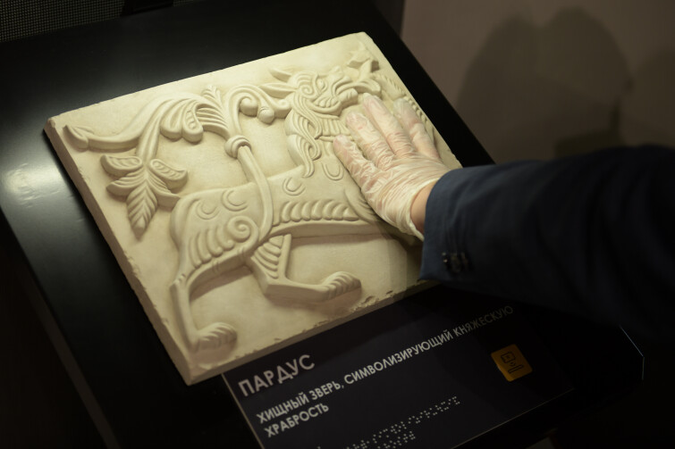 Тактильные экспонаты Георгиевского собора изготовлены из специальных материалов, передающих не только форму, но и тактильные особенности оригинала. Прикоснувшись к ним, гости музея почувствуют то же, что они ощутили бы, дотронувшись до настоящего артефакта XI-XII вв.